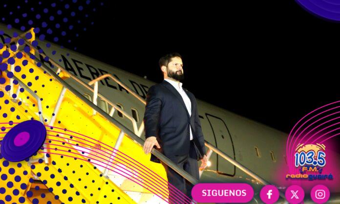 El presidente de Chile, Gabriel Boric, arribó en la noche de este martes a Paraguay, en el marco de su primera visita oficial al país, a fin de desarrollar una amplia agenda que incluye una reunión con el mandatario paraguayo, Santiago Peña, y la firma de documentos bilaterales.